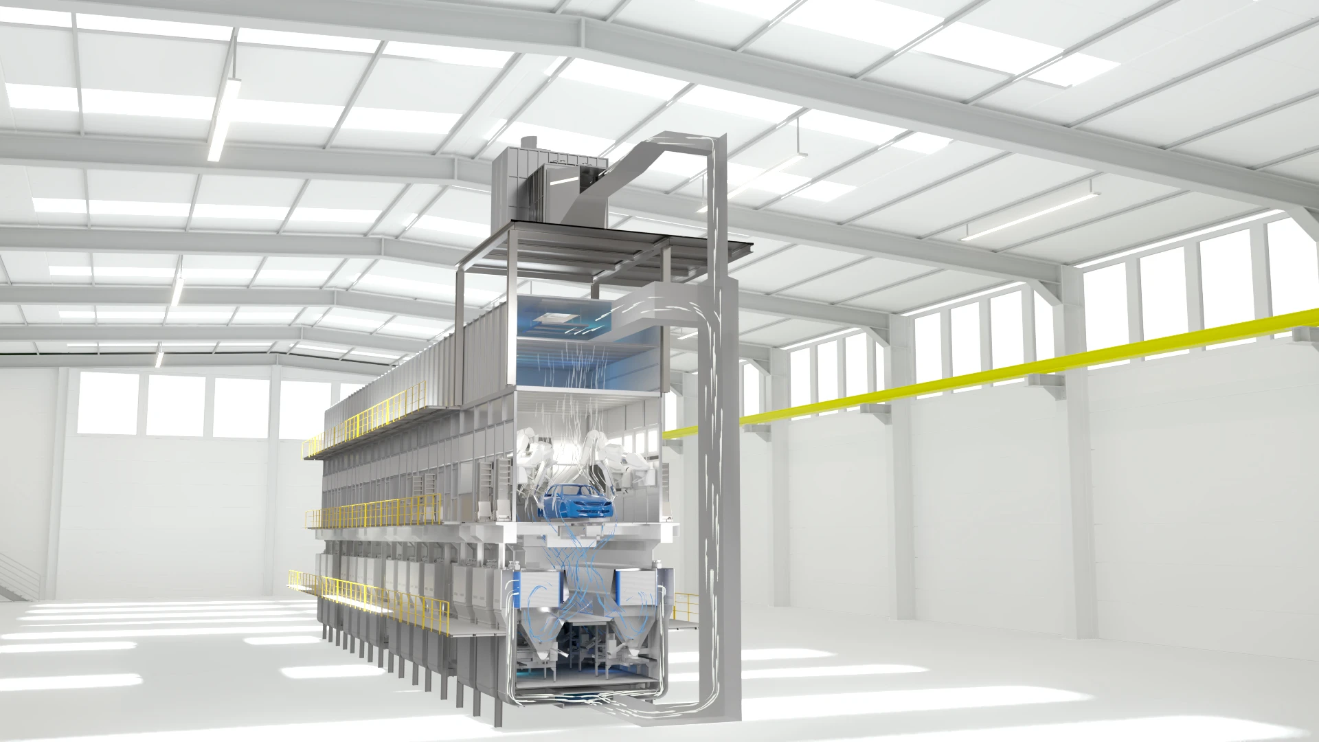 A central factor in CO2 emissions reduction is body drying since it consumes the most energy in the painting process. Operating the ovens with regenerative energy, like green electricity, reduces the CO2 emissions from the overall system by around 40 percent compared to a paint shop using natural gas. “This was one of the reasons why Volkswagen opted for the EcoInCure electric drying system,” explains Bruno Welsch, COO Automotive at Dürr. “Another is its special air duct system that heats the bodies from the inside out. This technology results in more uniform heating and cooling behavior and reaches solid body components like the rocker panels more directly than conventional systems, cutting the body heating times by 30 percent.”