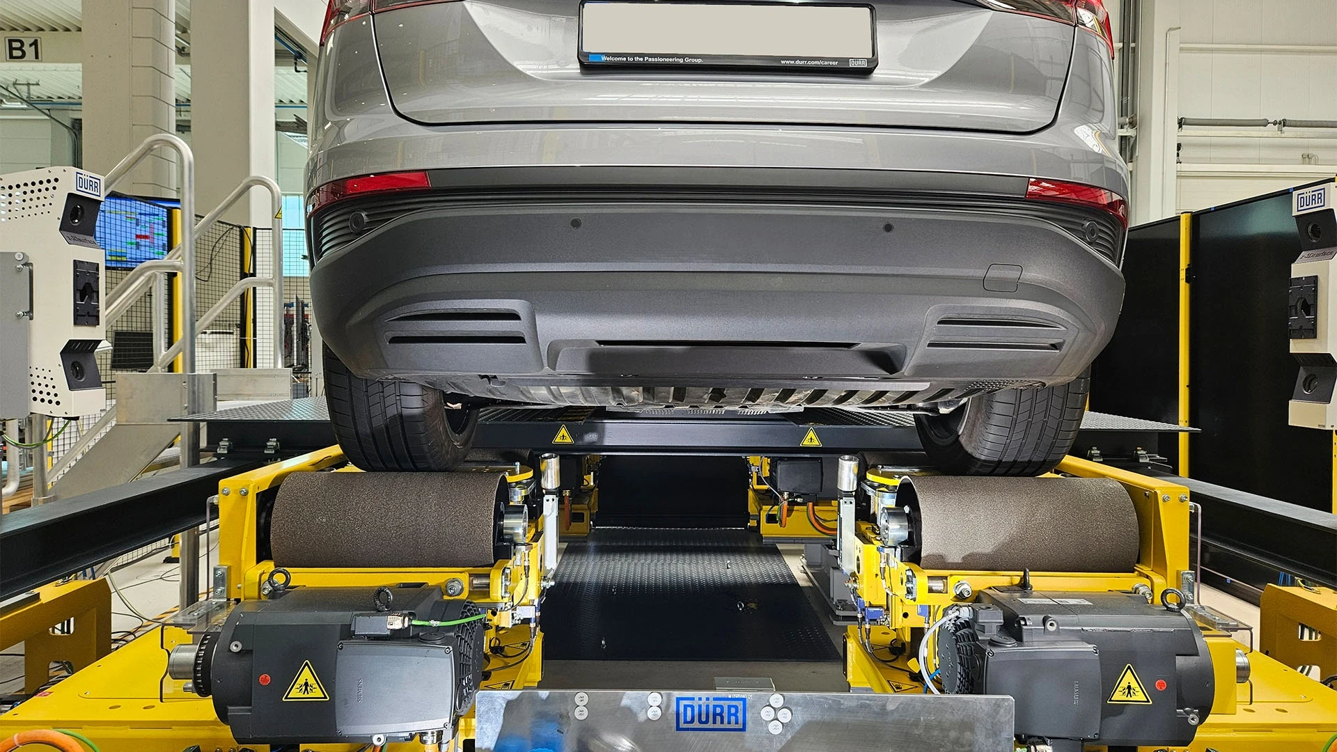 The testing and adjustment process can be fully automated or manual, including vehicle transport. Special features include a distinct wheel support that combines the wheel alignment stand with the brake/sensor test stand. The x-combined offers several significant advantages, including eliminating the need for a pit and reducing space requirements, making it essential for increased flexibility in future assembly shops.