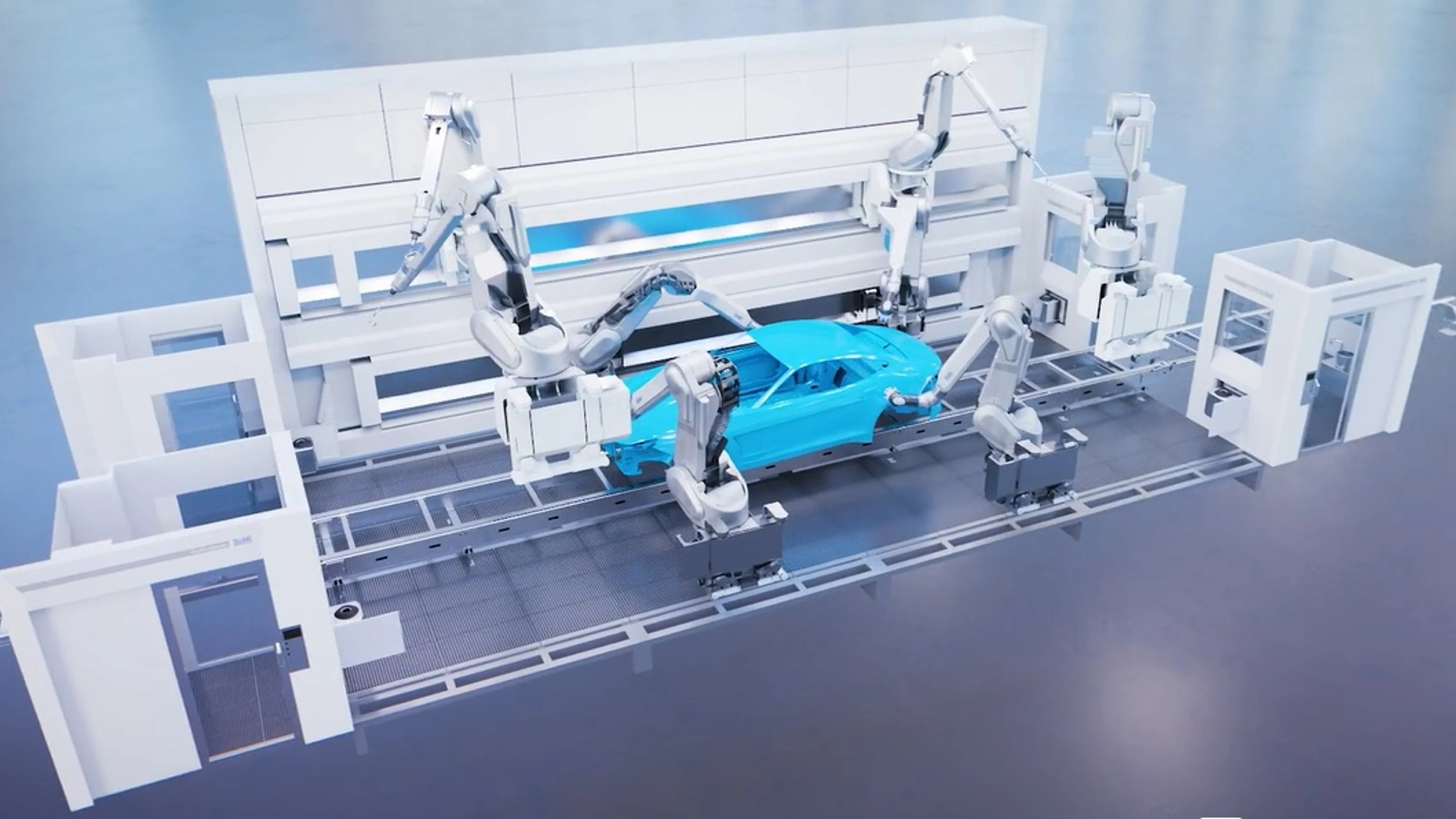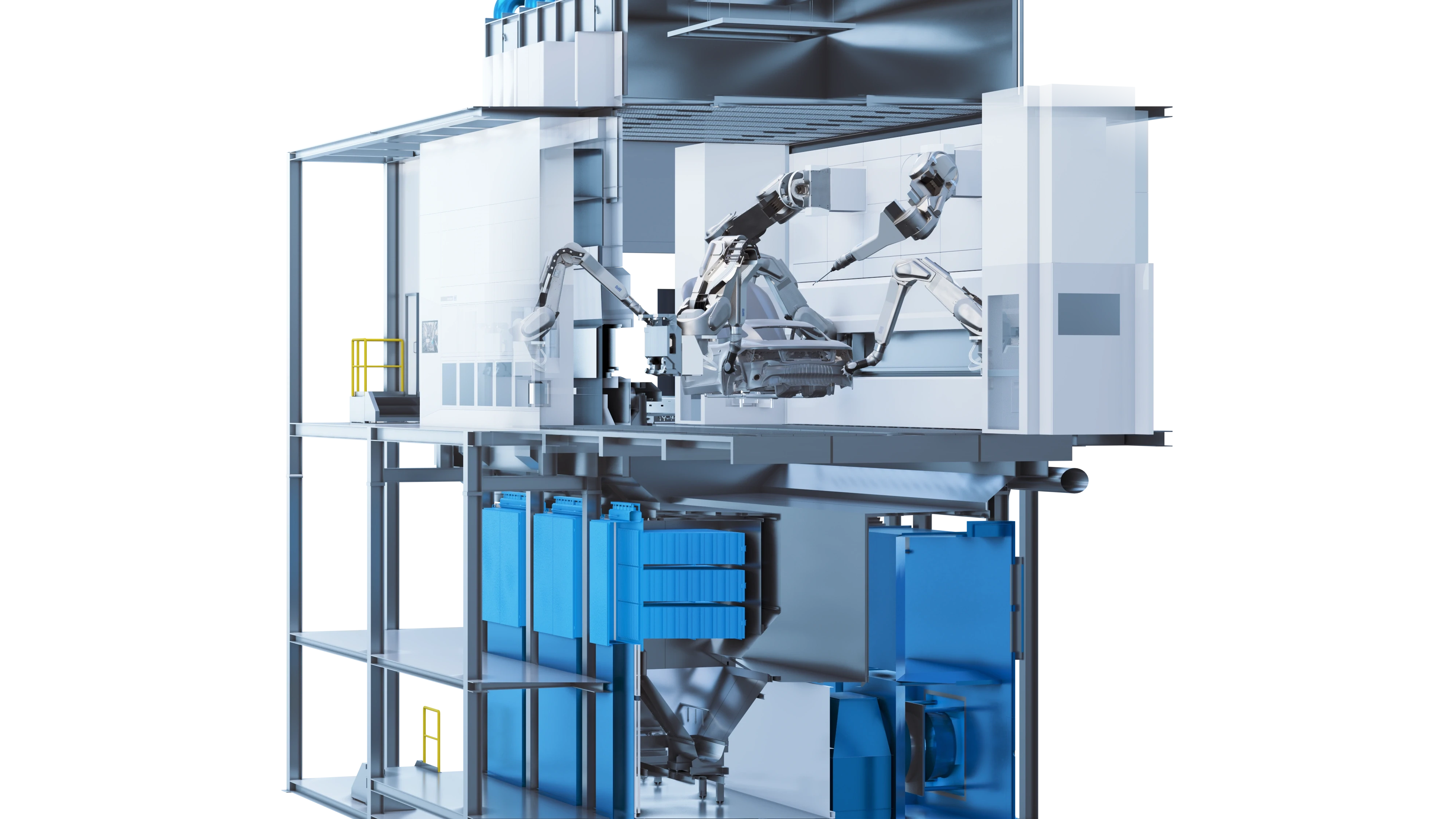 The EcoProBooth, combined with the EcoBell4 Pro generation, enables both vehicle interiors and exteriors to be painted in the same booth using either solvent- or water-based paints. The universal atomizers generate narrow jets for the interior and wide jets for the exterior, including the use of metallic paints. This eliminates the need to move car bodies between spray booths, which saves time. Tasks are distributed effectively, allowing idle robots to undergo cleaning or maintenance without production downtime. For this, robots can move to integrated service cubicles located in each corner of the spray booth.