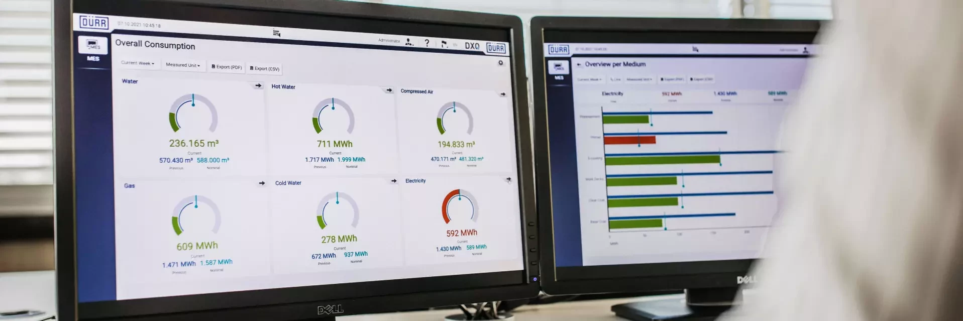 What are a production plant’s electricity consumption trends? How much solvent does each workpiece require? Is there a noticeable increase in water consumption? Plant operators need answers to these and many other questions – especially in energy-intensive sectors like car manufacturing – to reduce energy consumption, CO2 emissions, and operating costs. Dürr’s energy management solution DXQenergy.management transparently displays the necessary data to the user in clearly arranged dashboards. Various views are available to quickly see relevant gas, electricity, water, paint, or solvent consumption for the entire plant or select areas like individual process lines.