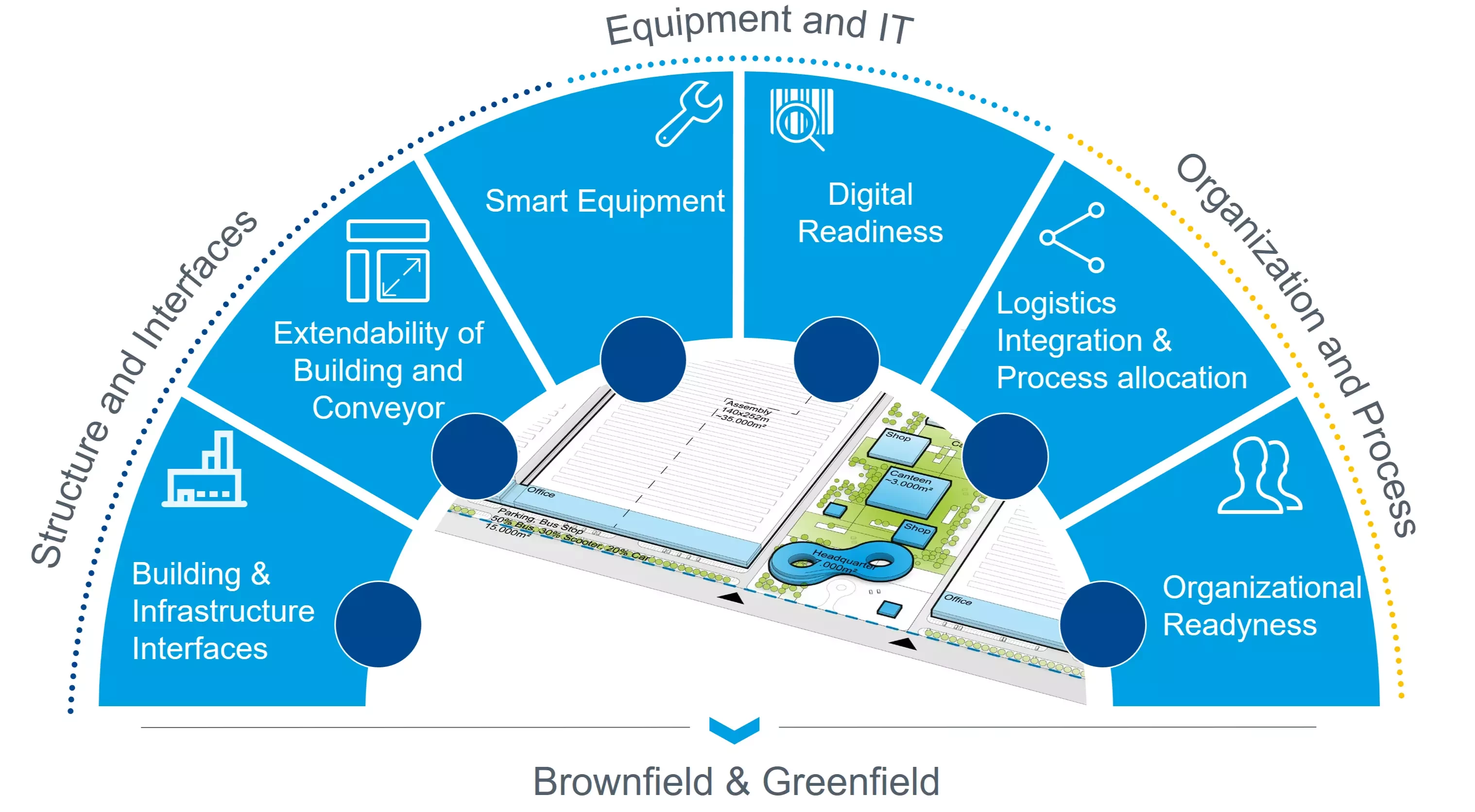 These aspects must be individually adapted to the requirements of the respective manufacturer. Since few new production facilities are being built in Europe, such a flexible production solution is usually implemented as a brownfield integration.