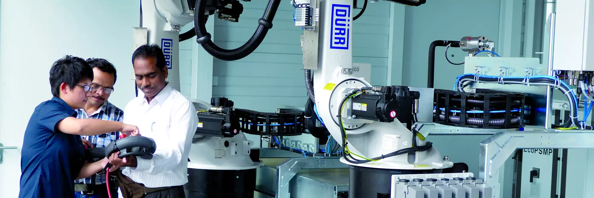 In addition to the customer-focused seminars, in which the contents and dates are tailored specifically to the participants from a particular company, Dürr has recently started offering open enrollment courses. Interested parties can enroll individually for these qualification courses, in which skilled personnel from various companies and different countries are instructed in small groups. The broad program includes for example, the basic course on Teach Programming / EcoScreen 3D-OnSite, as well as training courses on sealing processes or on application technology in automotive series painting. In these courses, the participants become familiar with various painting materials, paint dosing techniques and appropriate application technologies, and train on the Dürr robots. All courses, together with their contents and dates, are listed on the Dürr Training Center Website. A traffic light system indicates whether places are still available on each course. Needless to say, you can register for the courses online.