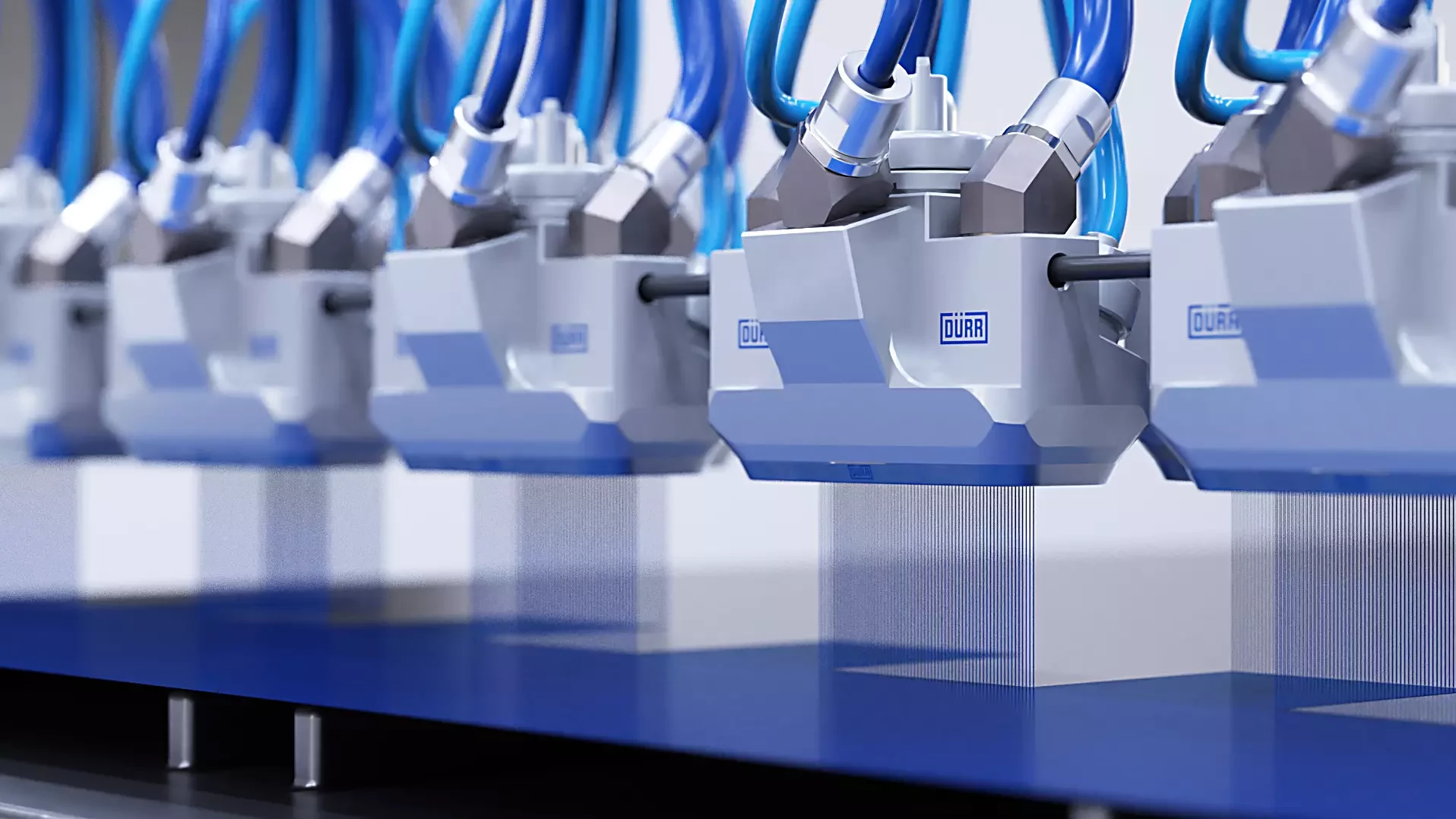 As early as 2019, Dürr's overspray-free technology called EcoPaintJet was introduced in the automotive industry, where it is already being used in series production. The process is characterized by its high efficiency, as masking is completely eliminated. This is ensured by a completely new type of applicator that applies the paint with absolutely sharp separation. This means that the coating lands exactly on the intended surfaces, but not off them - even in very small quantities. What has already proven itself in the automotive industry is now to be used in other industries as well. All applications in which paint is applied in lanes are possible.