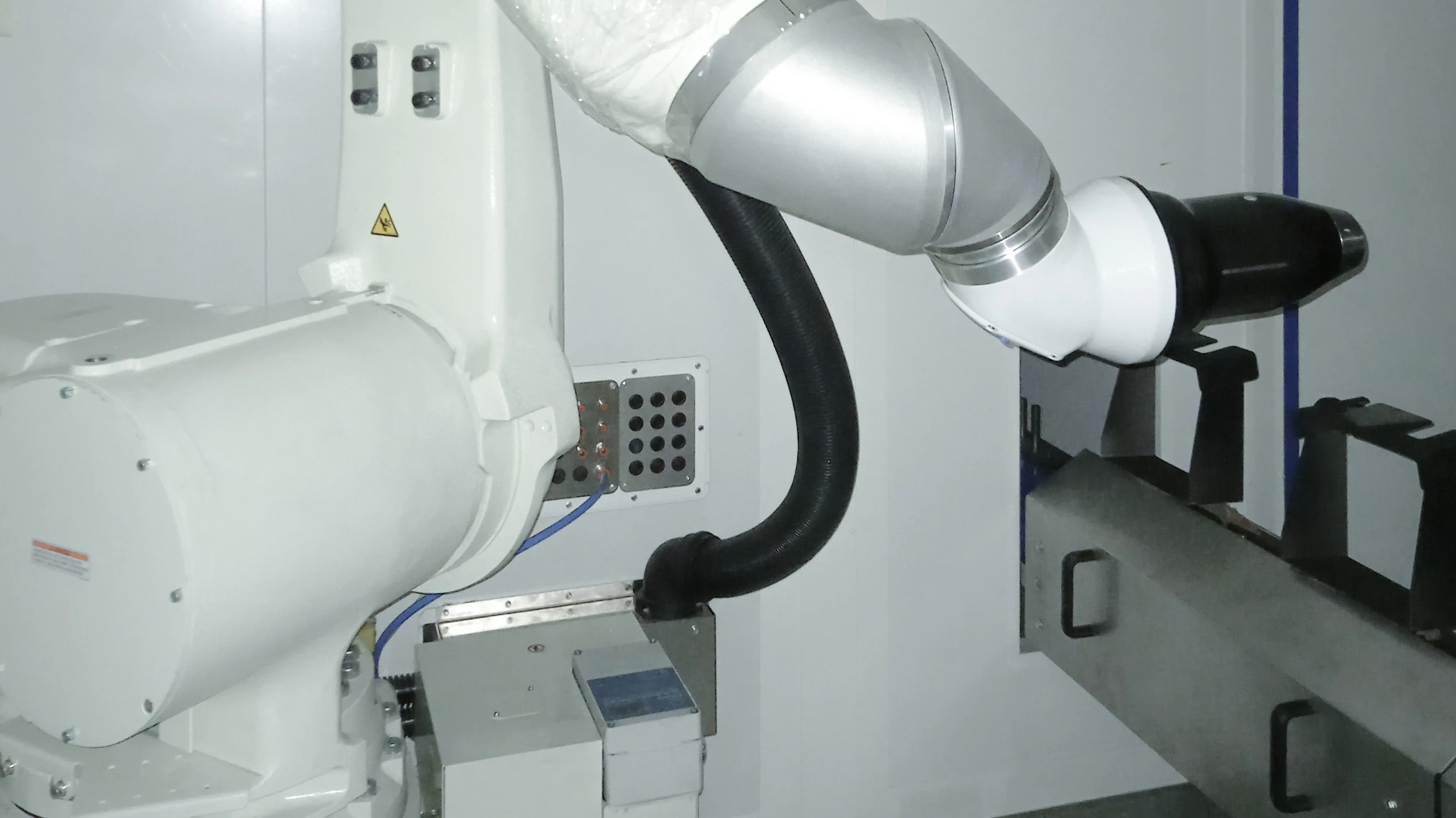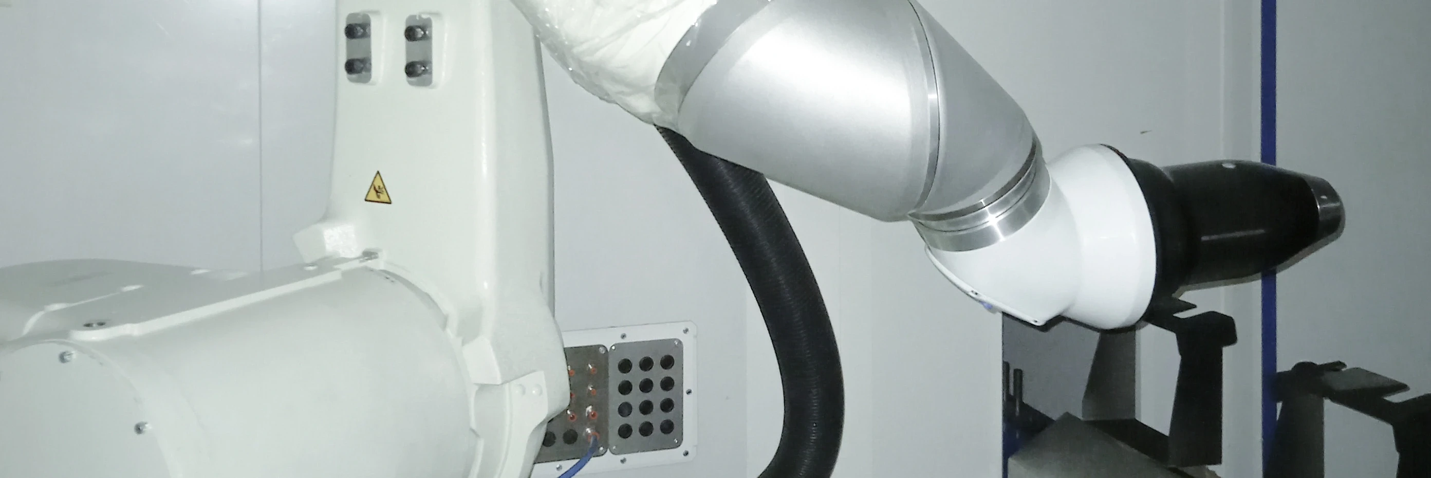 In the future, an EcoBell rotary atomizer mounted on a Kawasaki robot will paint plastic interiors for electric vehicles. With an EcoPump AD package, a fluid board, a two-component mixing and dosing system, and the EcoBell high-speed rotary atomizer without high tension, Dürr is supplying the full range of equipment from paint distribution to application for the new paint shop.
