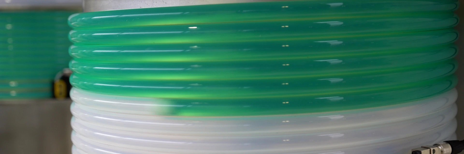 For pigging technology, Dürr uses a fitting body tailored to the internal diameter of the hoses – the so-called pig – to make the process more efficient and reduce paint and rinsing agent consumption. The paint, flowing through the pigging hose, pushes the pig from the source to the target module. This process removes any rinsing agent residue in the hose. Distributor stations, with the option of integrating up to four into one pigging line, provide the connection to the application technology. After the paint application, compressed air blows the pig back towards the source module. In the process, the paint left in the hose is transported back into the paint container. Rinsing agent then flows through the pigging hose towards the destination module. After cleaning, the process repeats.